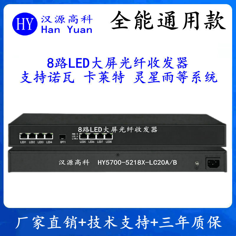 汉源高科8路LED大屏光纤收发器以三大核心技术彻底改写汉源高科8路LED大屏光纤收发器(型号:HY5700-5218X-LC20A/B)的登场,以“超远距离+全兼容+军工级防护”三大核心技术,彻底改写了LED屏传输的行业规则。它不仅解决了“信号传不远、多品牌不兼容、环境适应差”的痛点,更让LED屏从“能用”迈向“好用”,从“专用”走向“通用”。本文将聚焦三大核心场景,揭秘这款“全能传输利器”如何为各行业注入“视觉生命力”。
